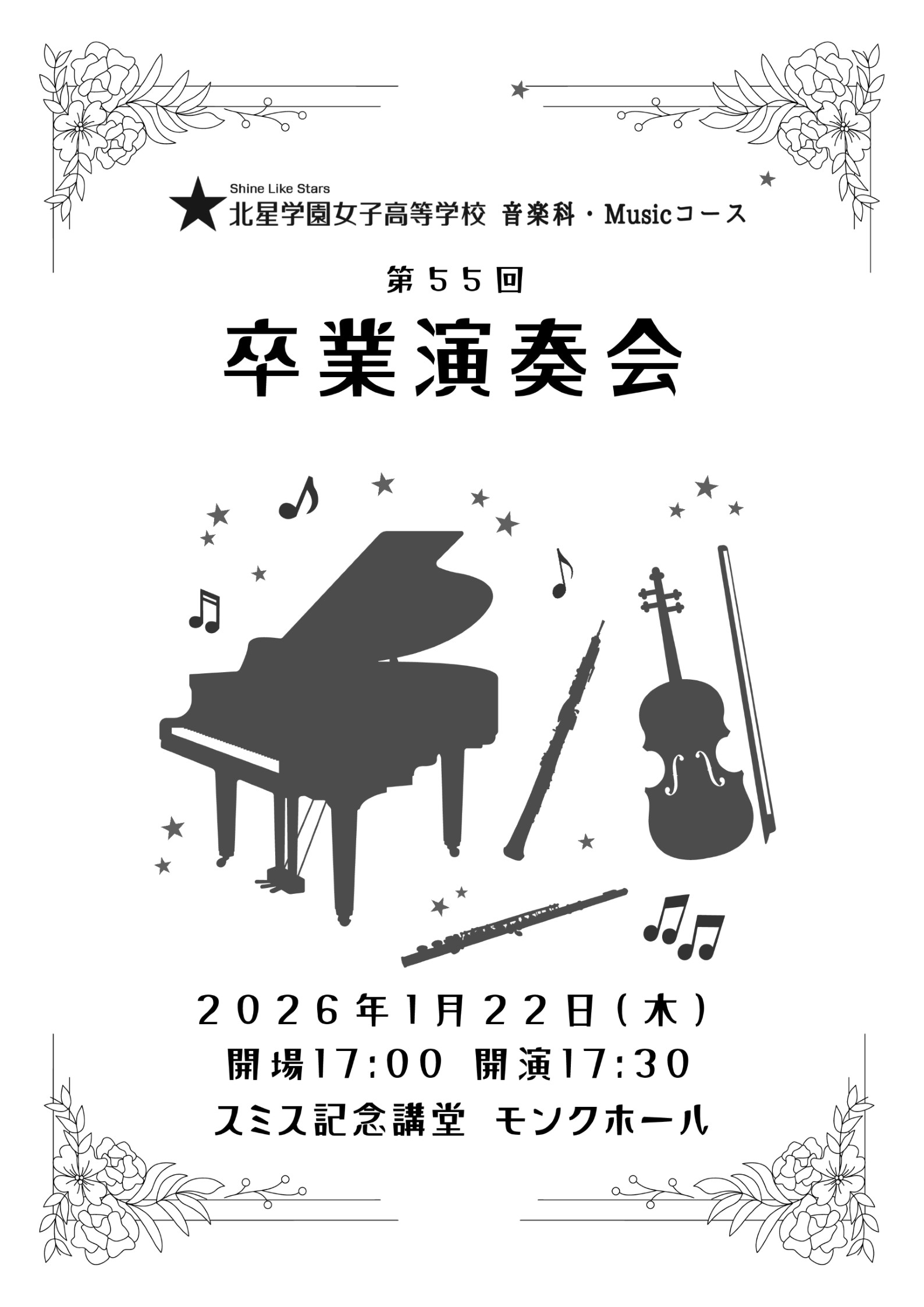 スミス記念講堂モンクホールにて、音楽科6年生による卒業演奏会が開催されます。